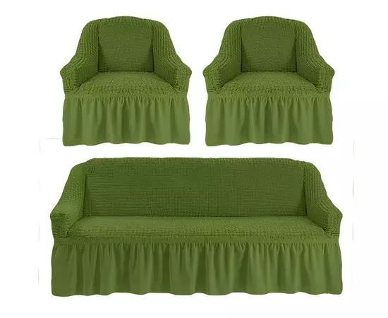 Huse Elastice si Creponate, Canapea 3 Persoane + 2 Fotolii, Verde Kaki - HEP134