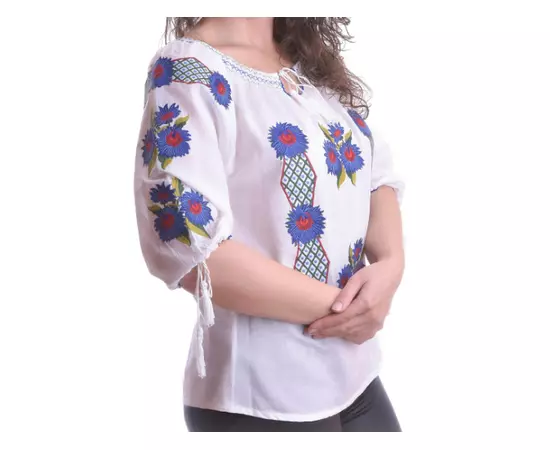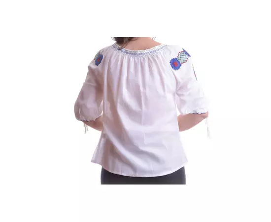 Ie Traditionala Alba cu Motiv Floral Albastru de Dama - IMS11