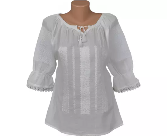 Ie Traditionala Alba cu Motiv Geometric de Dama - IMS23