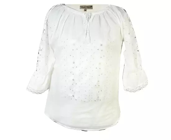 Ie Traditionala Alba cu Motiv Floral Argintiu de Dama - IMS04