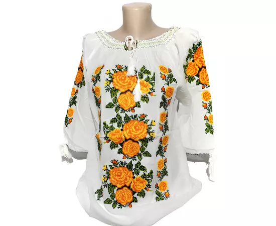 Ie Traditionala Alba cu Motiv Floral Galben de Dama - IMS15