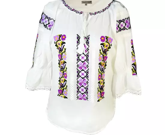 Ie Traditionala Alba cu Motiv Floral Mov de Dama - IMS06