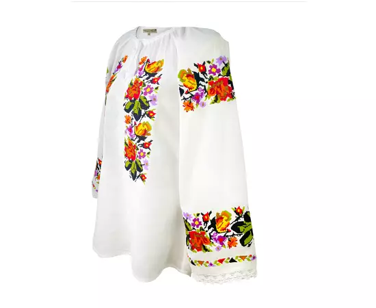 Ie Traditionala Alba cu Motiv Floral Multicolor- IML17