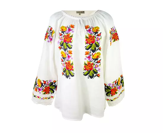 Ie Traditionala Alba cu Motiv Floral Multicolor- IML17