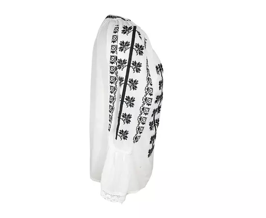 Ie Traditionala Alba cu Motiv Floral Negru- IML08