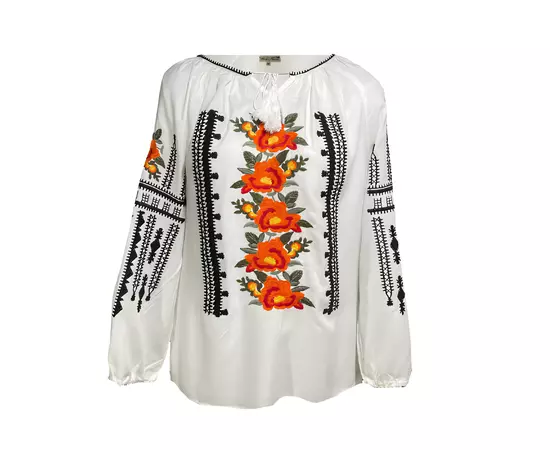 Ie Traditionala Alba cu Motiv Floral Portocaliu- IML26