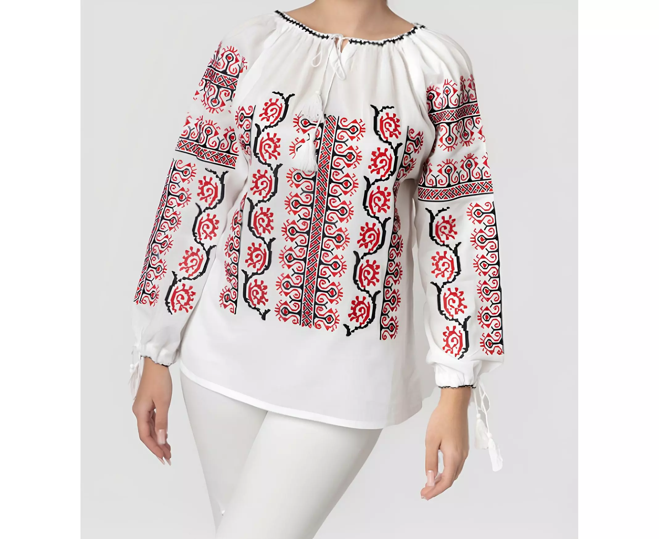 Ie Traditionala Alba cu Motiv Floral Rosu- IML14