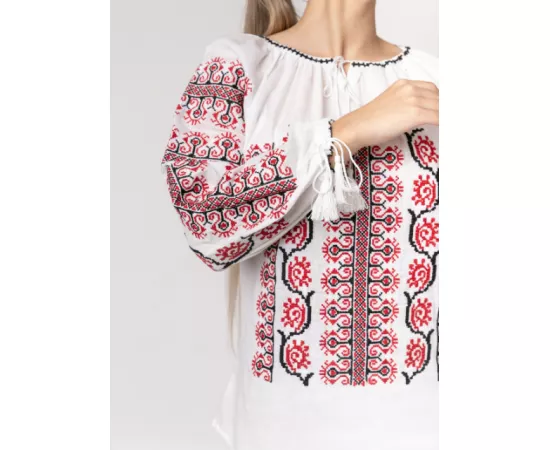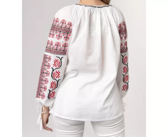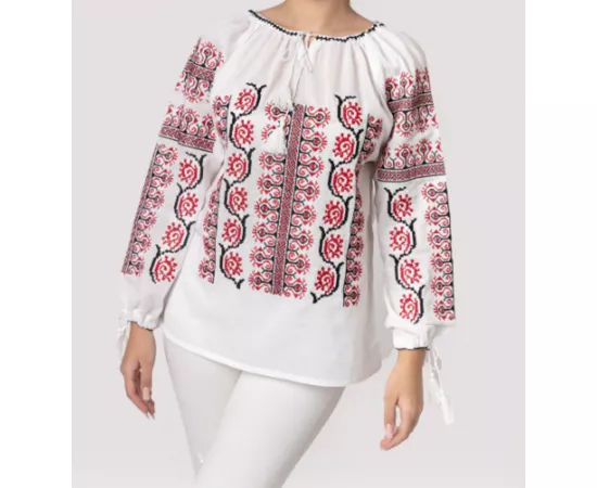 Ie Traditionala Alba cu Motiv Floral Rosu- IML14