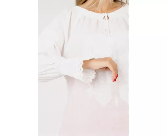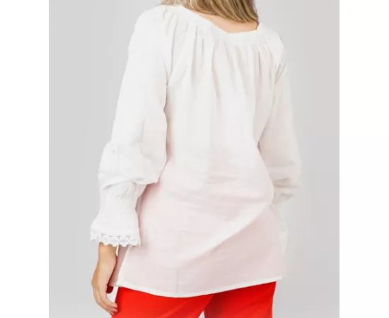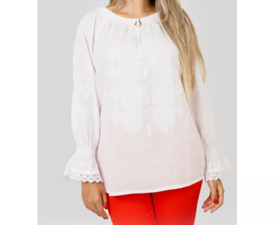 Ie Traditionala Alba cu Motiv Geometric Alb- IML15