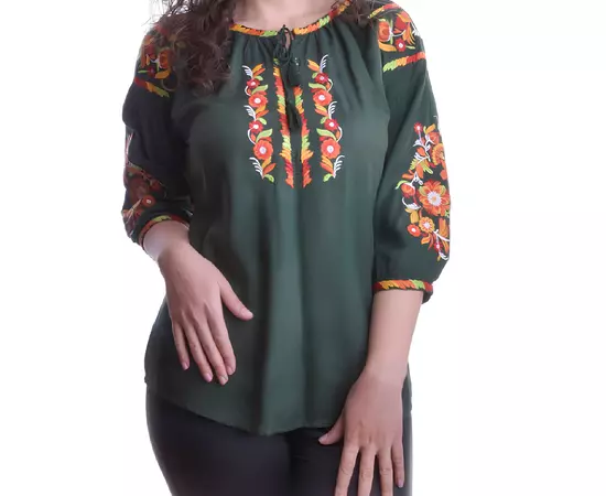 Ie Traditionala Verde cu Motiv Floral Multicolor de Dama - IMS19