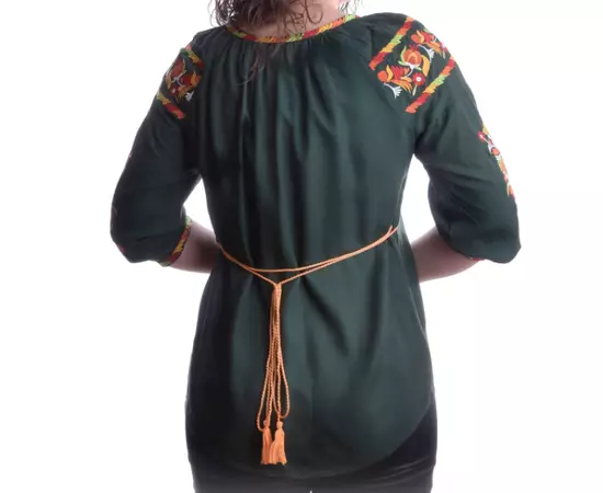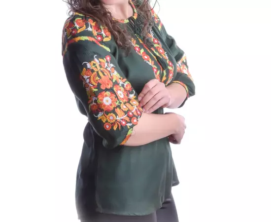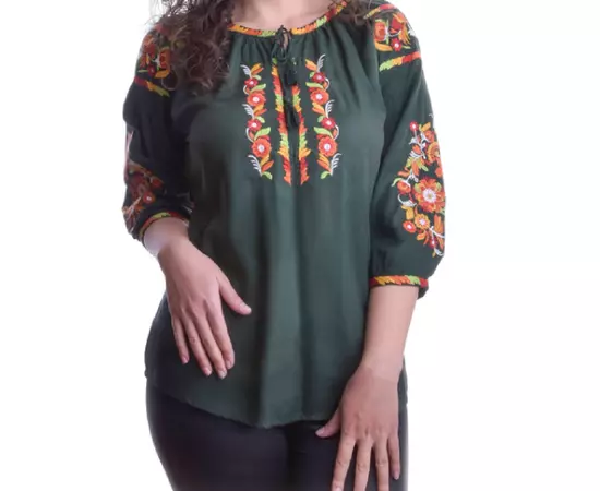 Ie Traditionala Verde cu Motiv Floral Multicolor de Dama - IMS19