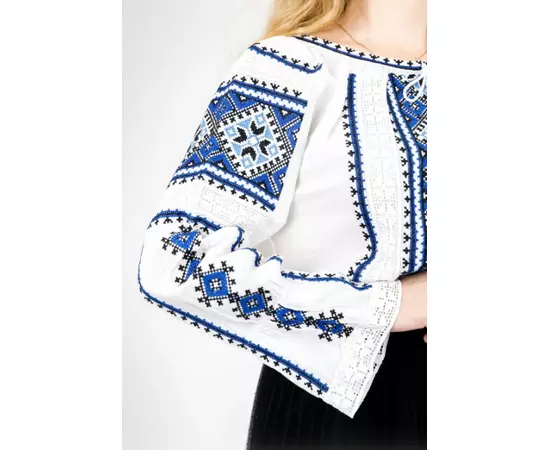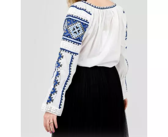 Ie Traditionala Alba cu Motiv Geometric Albastru- IML03