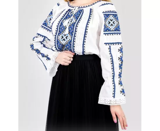Ie Traditionala Alba cu Motiv Geometric Albastru- IML03