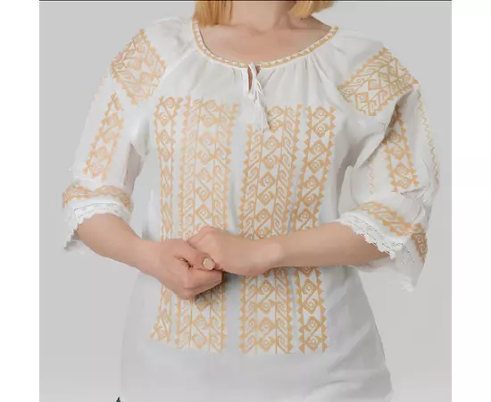 Ie Traditionala Alba cu Motiv Geometric Crem de Dama- IMS09