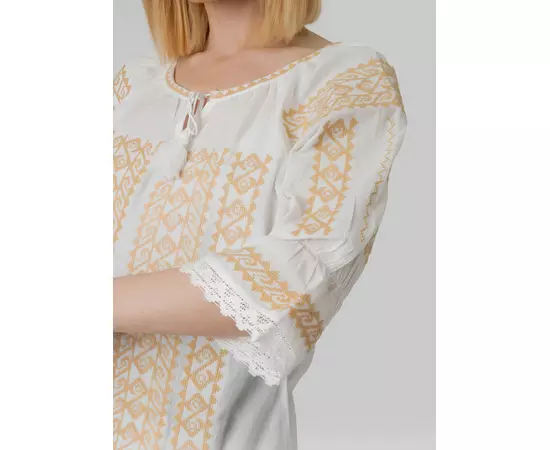 Ie traditionala alba din bumbac cu maneca 3/4 clopot si motiv traditional crem