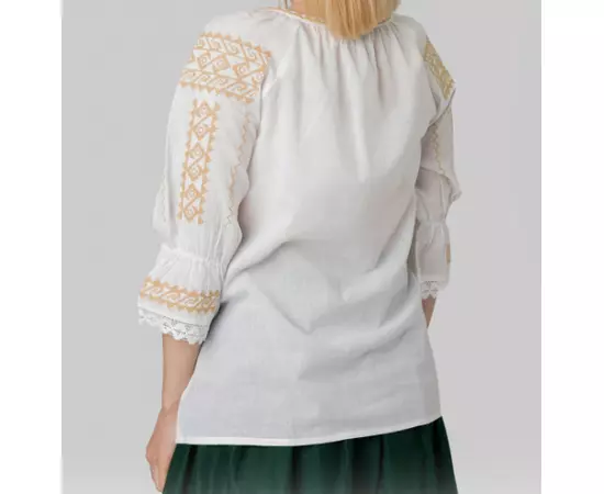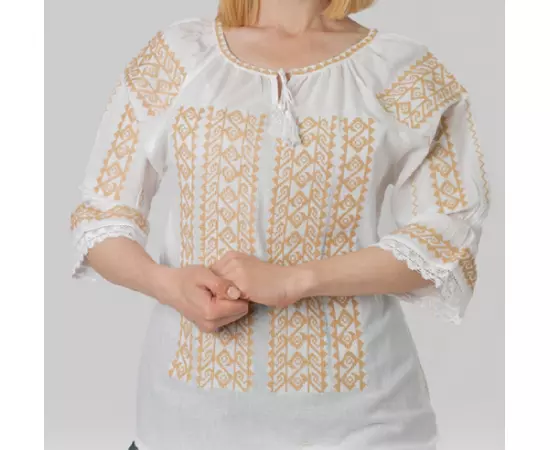Ie Traditionala Alba cu Motiv Geometric Crem de Dama- IMS09