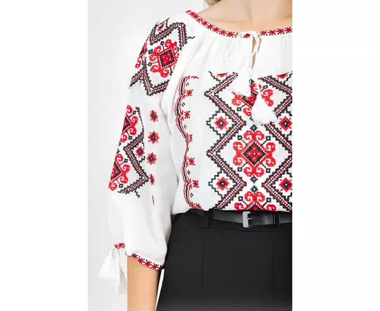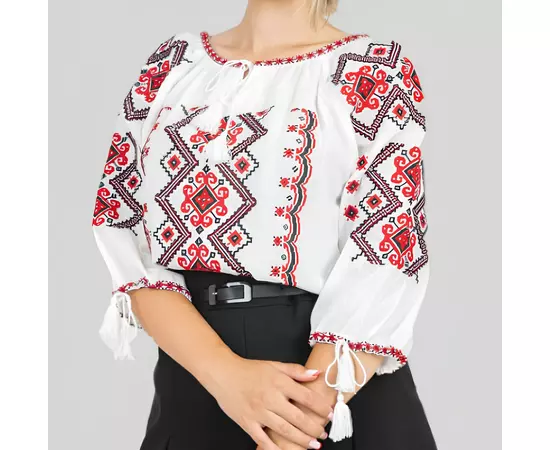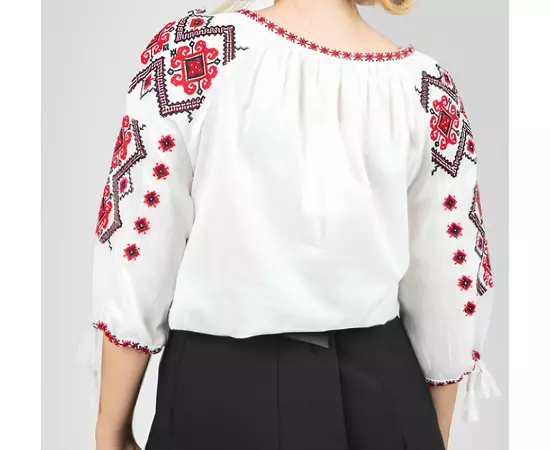 Ie Traditionala Alba cu Motiv Geometric Crem de Dama- IMS28