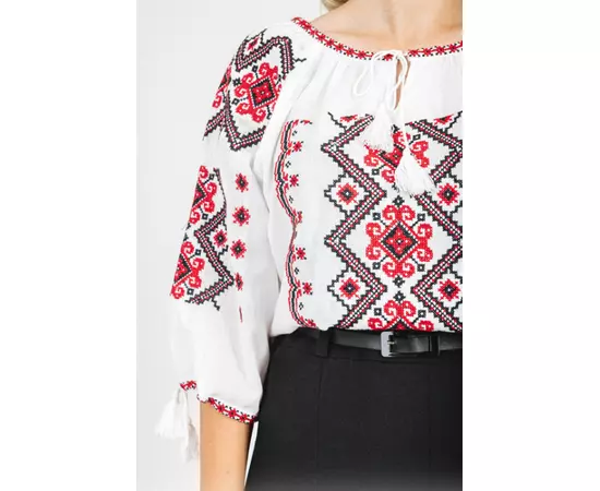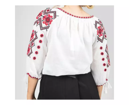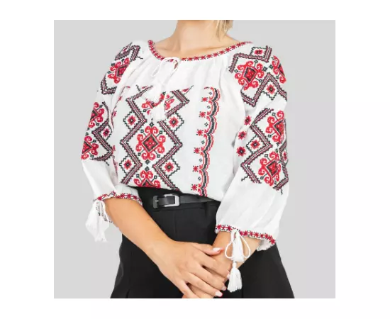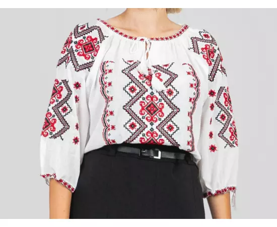 Ie Traditionala Alba cu Motiv Geometric Crem de Dama- IMS28