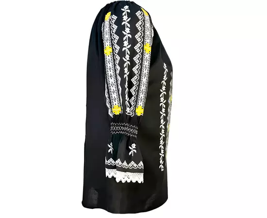 Ie traditionala neagra din bumbac cu maneca 3/4 clopot si motiv traditional alb