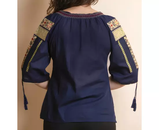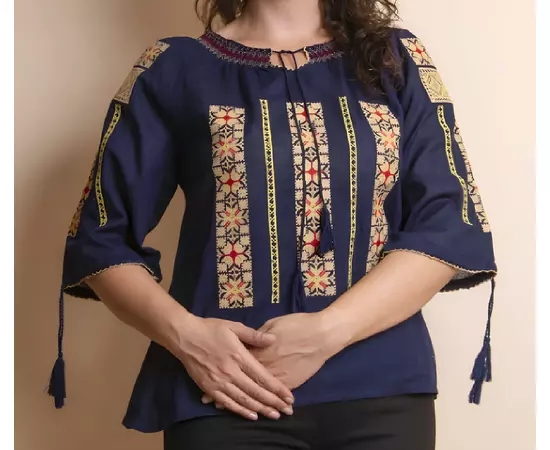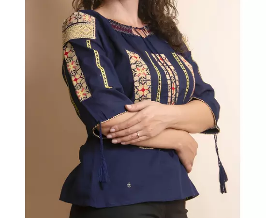 Ie Traditionala Albastra cu Motiv Floral Crem de Dama - IMS25