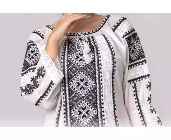 Ie Traditionala Alba cu Motiv Geometric de Dama, Gri- IMS01