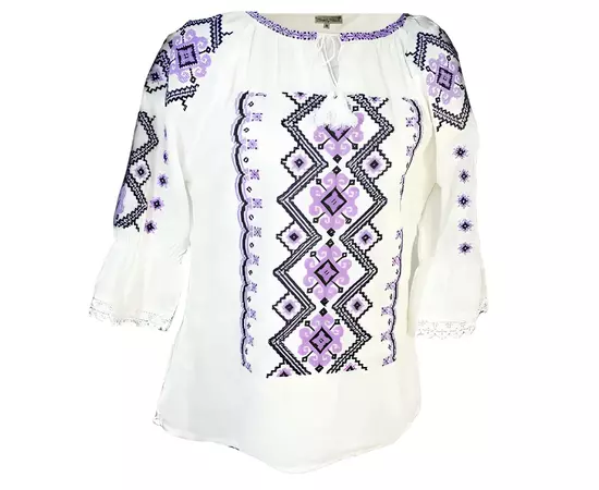 Ie Traditionala Alba cu Motiv Geometric Mov de Dama - IMS14