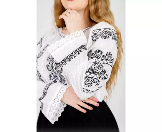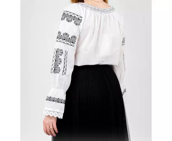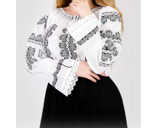 Ie Traditionala Alba cu Motiv Geometric Negru- IML02