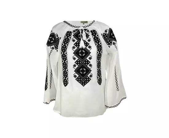 Ie Traditionala Alba cu Motiv Geometric Negru- IML04