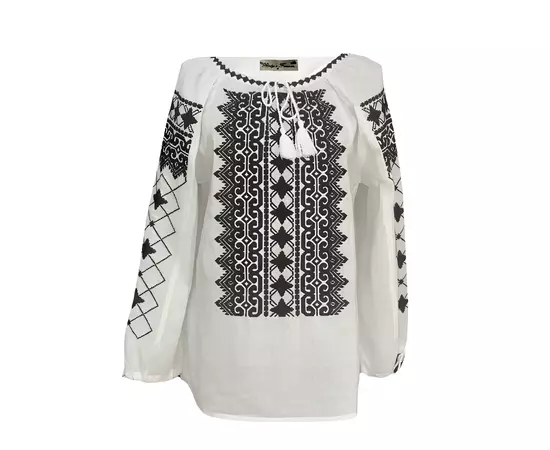 Ie Traditionala Alba cu Motiv Geometric Negru - IML10