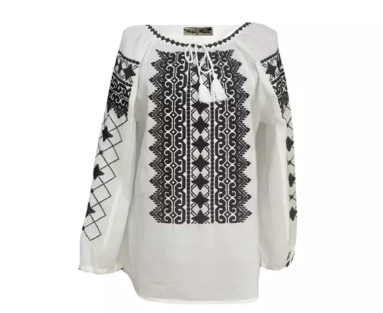 Ie Traditionala Alba cu Motiv Geometric Negru - IML10