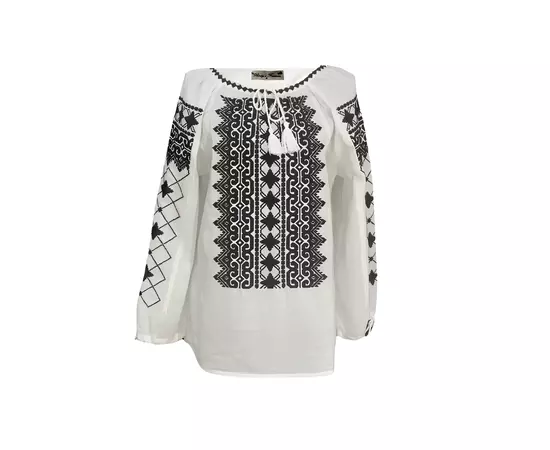 Ie Traditionala Alba cu Motiv Geometric Negru - IML10