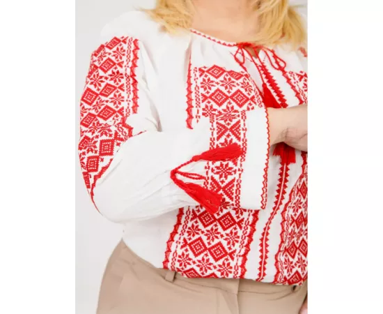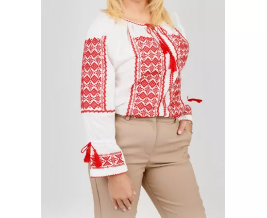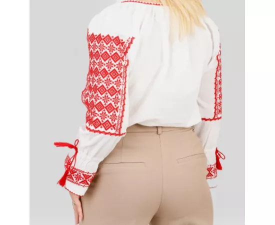 Ie Traditionala Alba cu Motiv Geometric Rosu- IML16