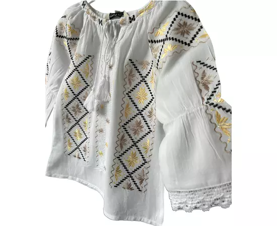 Ie Traditionala Alba pentru Fetite cu Motiv Floral Auriu - ITF07