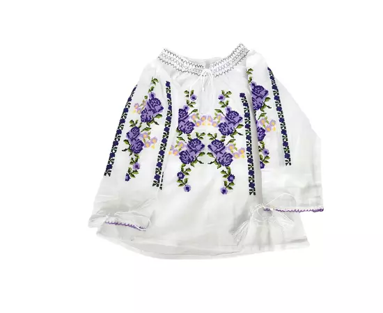 Ie Traditionala Alba pentru Fetite cu Motiv Floral Mov - ITF05