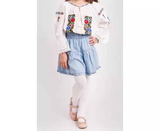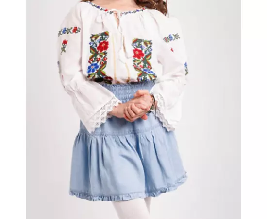 Ie Traditionala Alba pentru Fetite cu Motiv Floral Multicolor - ITF03