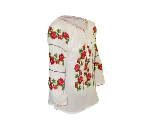 Ie Traditionala Alba pentru Fetite cu Motiv Floral Rosu - ITF02