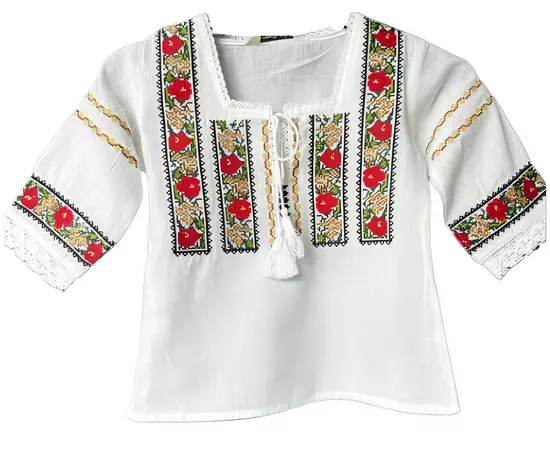 Ie Traditionala Alba pentru Fetite cu Motiv Floral Rosu - ITF19