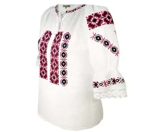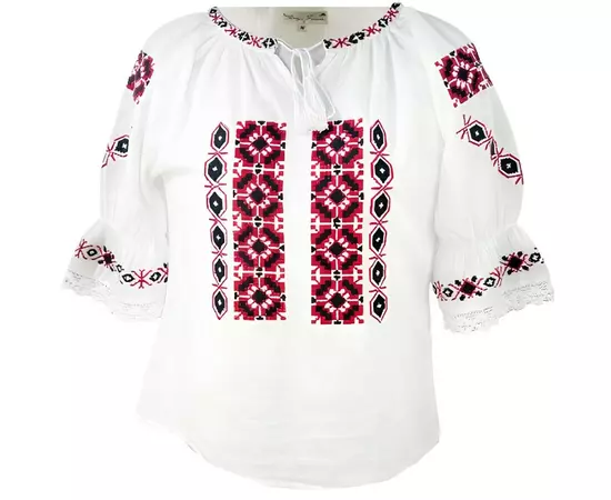 Ie Traditionala Alba pentru Fetite cu Motiv Geometric Rosu - ITF06