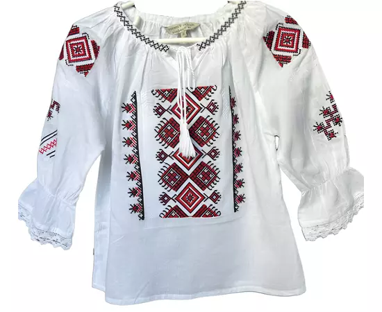 Ie Traditionala Alba pentru Fetite cu Motiv Geometric Rosu - ITF08