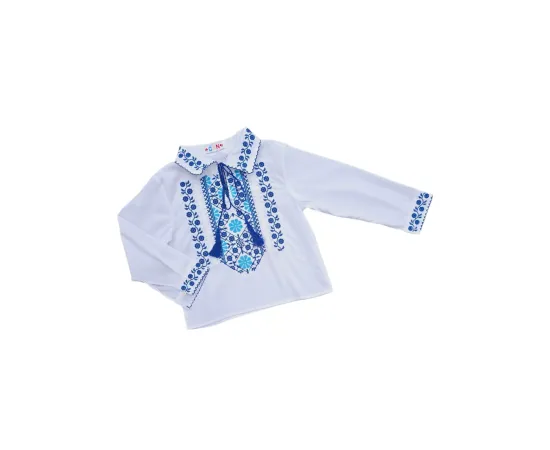 Ie traditionala baieti - Camasa brodata cu motive traditionale albastre - GBY107