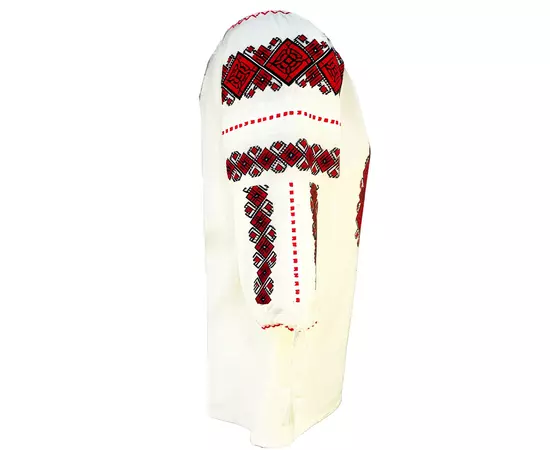 Ie traditionala crem din bumbac cu maneca 3/4 cu snur si motiv traditional rosu