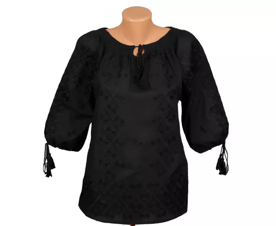 Bluza Tip Ie Traditionala Neagra cu Motiv Floral - BMG31