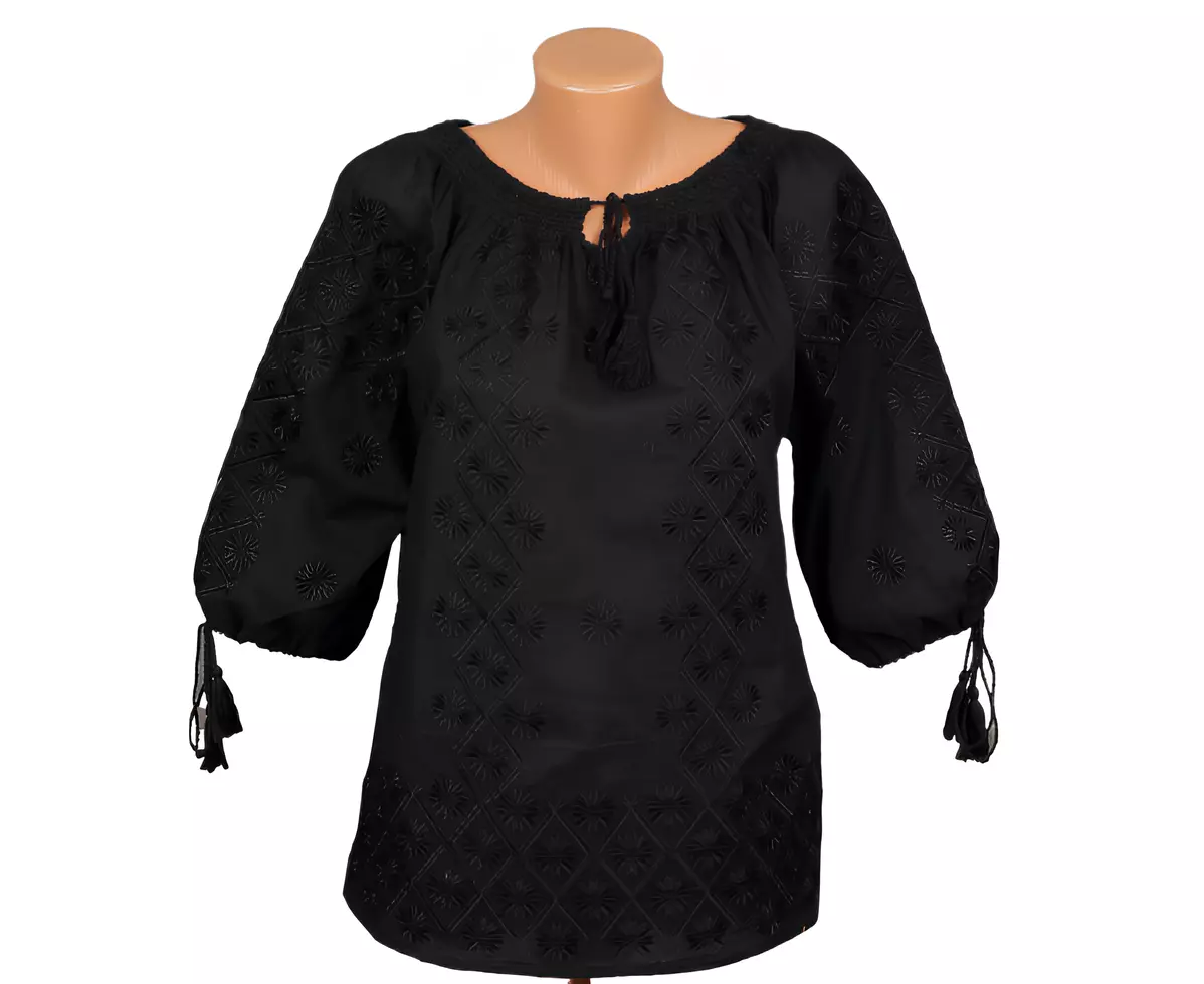 Bluza Tip Ie Traditionala Neagra cu Motiv Floral - BMG31