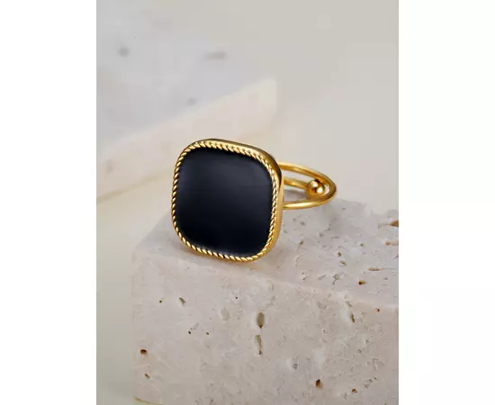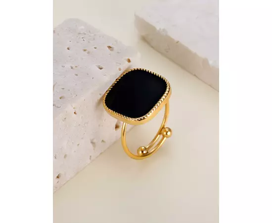 Inel Ajustabil cu Piatra Neagra, Auriu - 15621