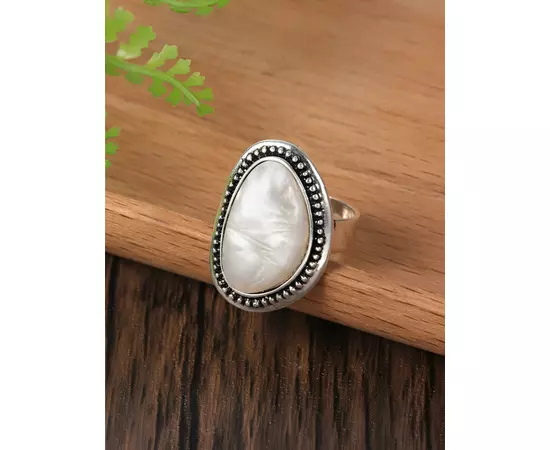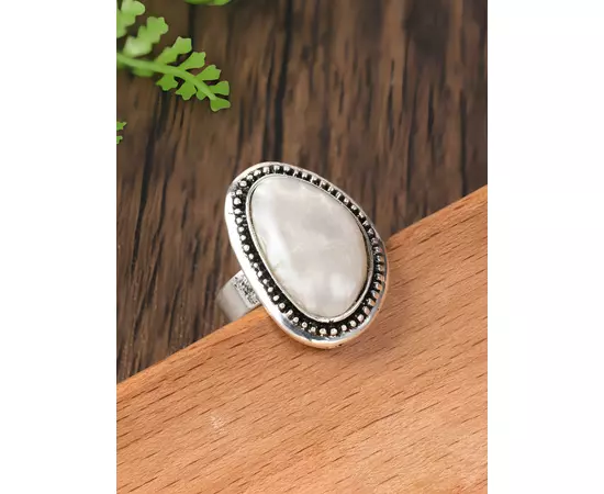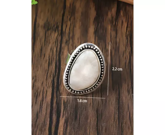 Inel Ajustabil Geometric cu Piatra Alba, Argintiu - 04448