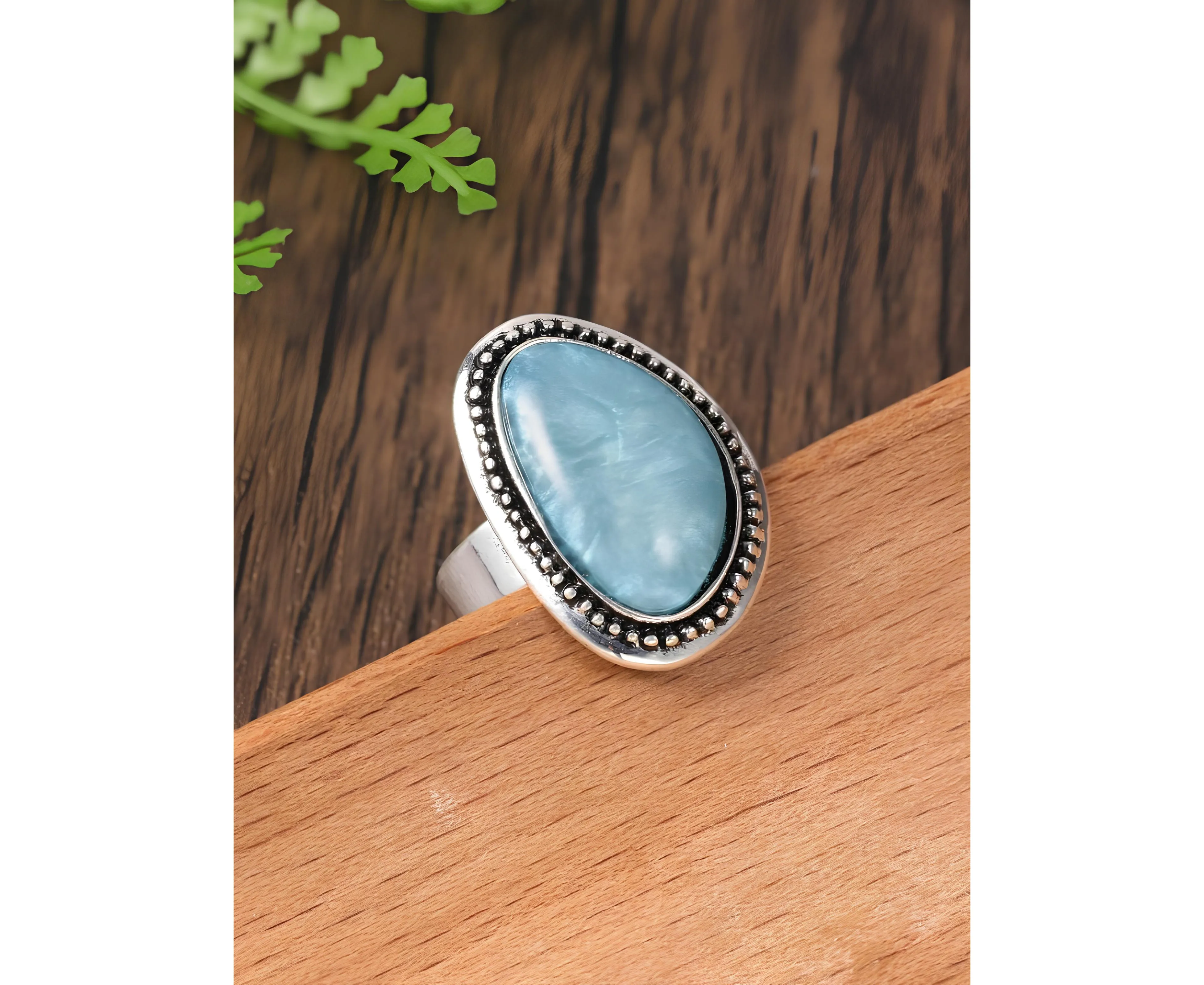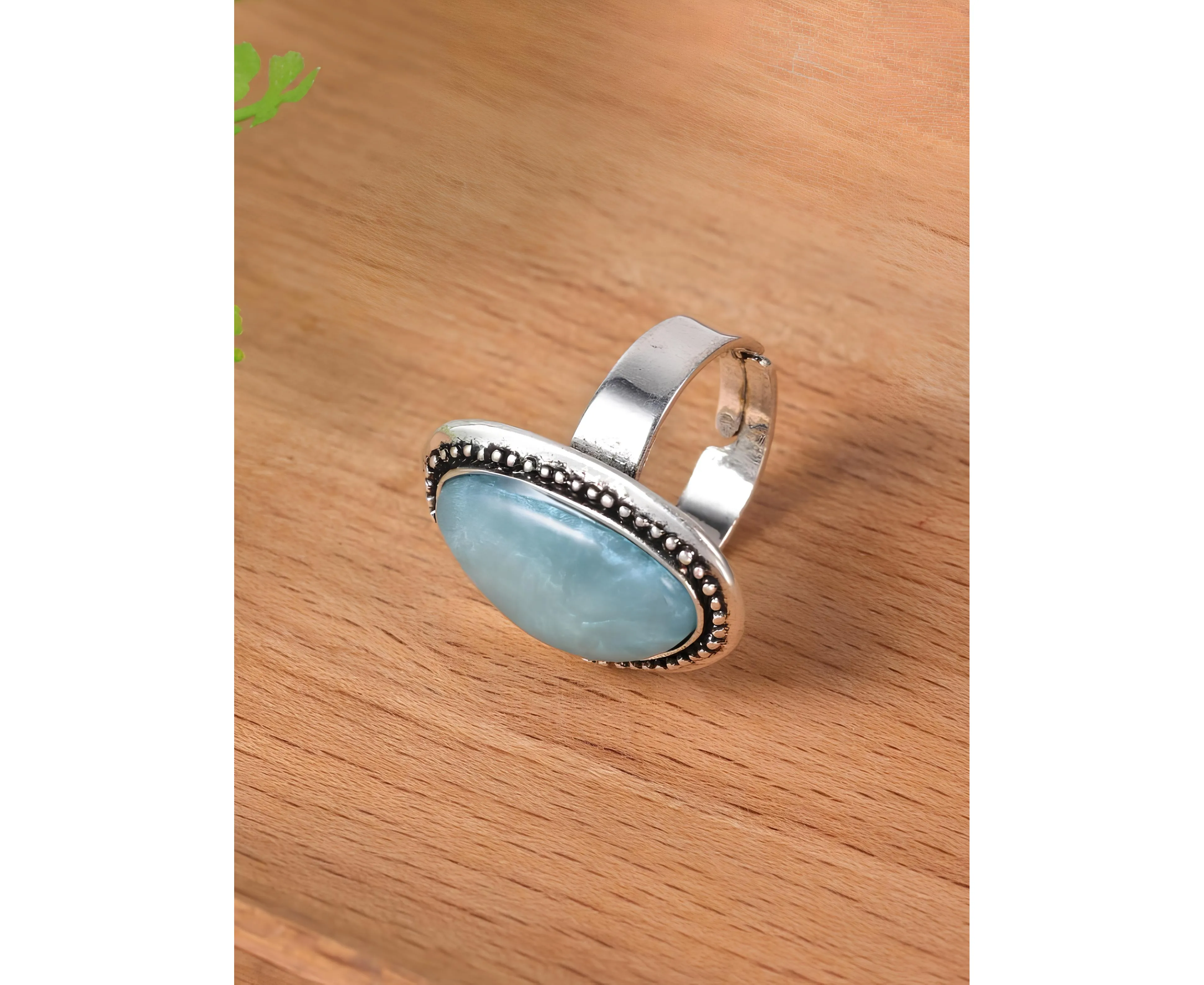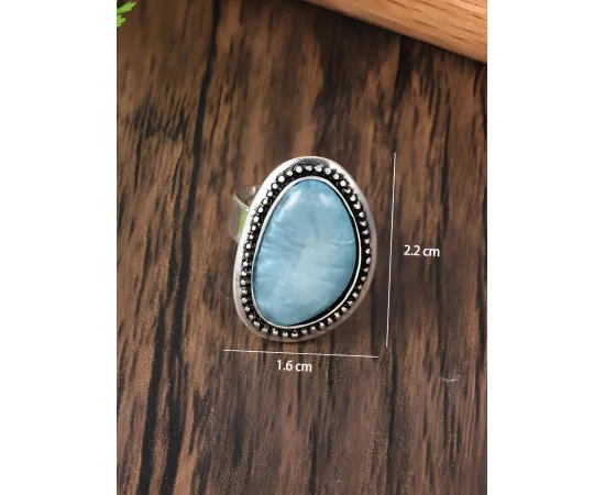 Inel Ajustabil Geometric cu Piatra Albastra , Argintiu - 61683