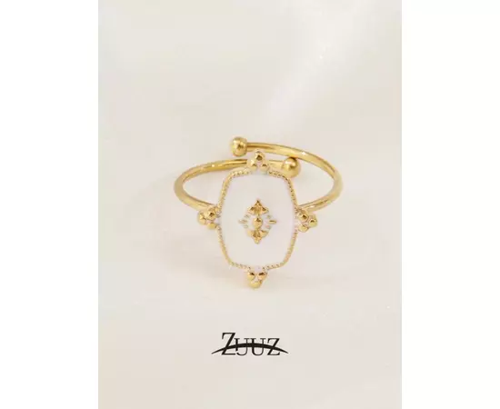 Inel Ajustabil Geometric din Otel Inxoidabil, Alb - 93679