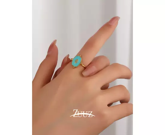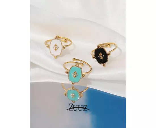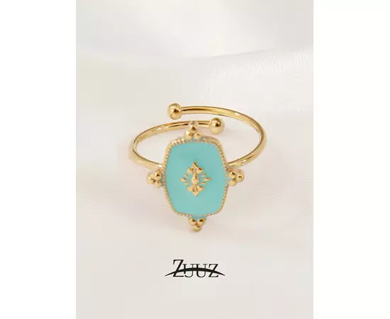 Inel Ajustabil Geometric din Otel Inxoidabil, Turcoaz - 93679