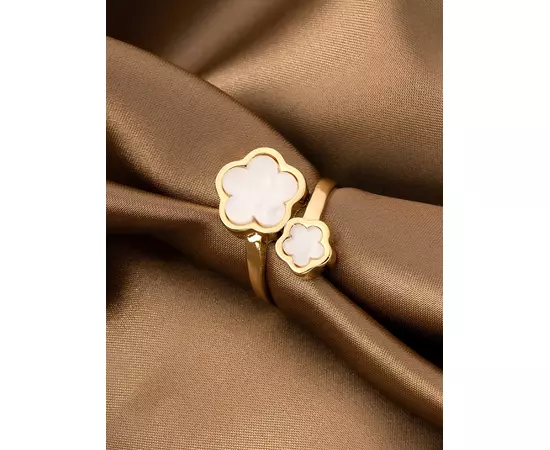Inel Ajustabil Trifoi cu Piatra Alba, Auriu - 09071A