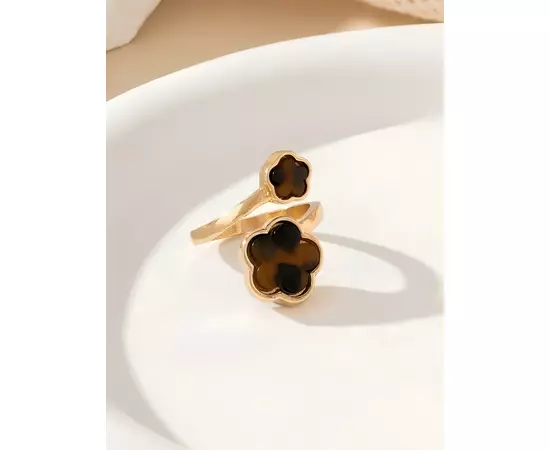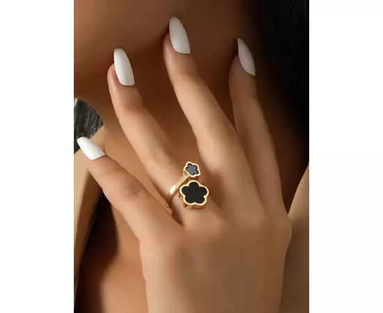 Inel Ajustabil Trifoi cu Piatra Neagra, Auriu - 09071